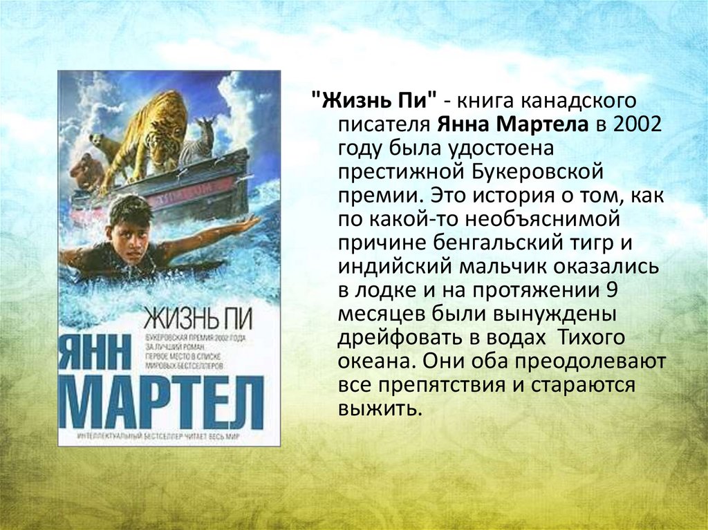 "Жизнь Пи" - книга канадскогописателя Янна Мартела в 2002