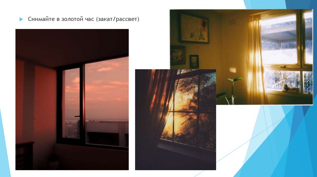 Усиливайте геометрию окна ракурсом! Точка съемки должна быть строгонапротив окна.