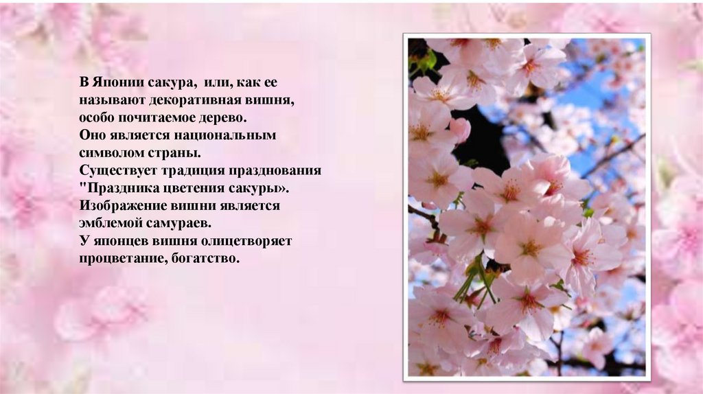В Японии сакура, или, как ееназывают декоративная вишня,