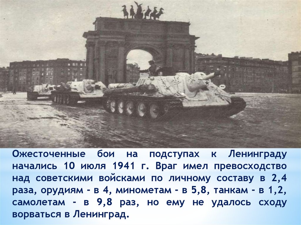 Ожесточенные бои на подступах к Ленинградуначались 10 июля 1941 г. Враг имел превосходство