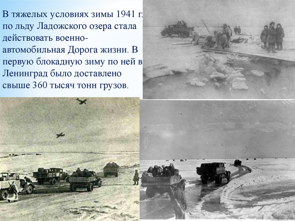 В тяжелых условиях зимы 1941 г.по льду Ладожского озера стала