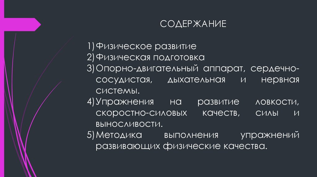 СОДЕРЖАНИЕ1)Физическое развитие