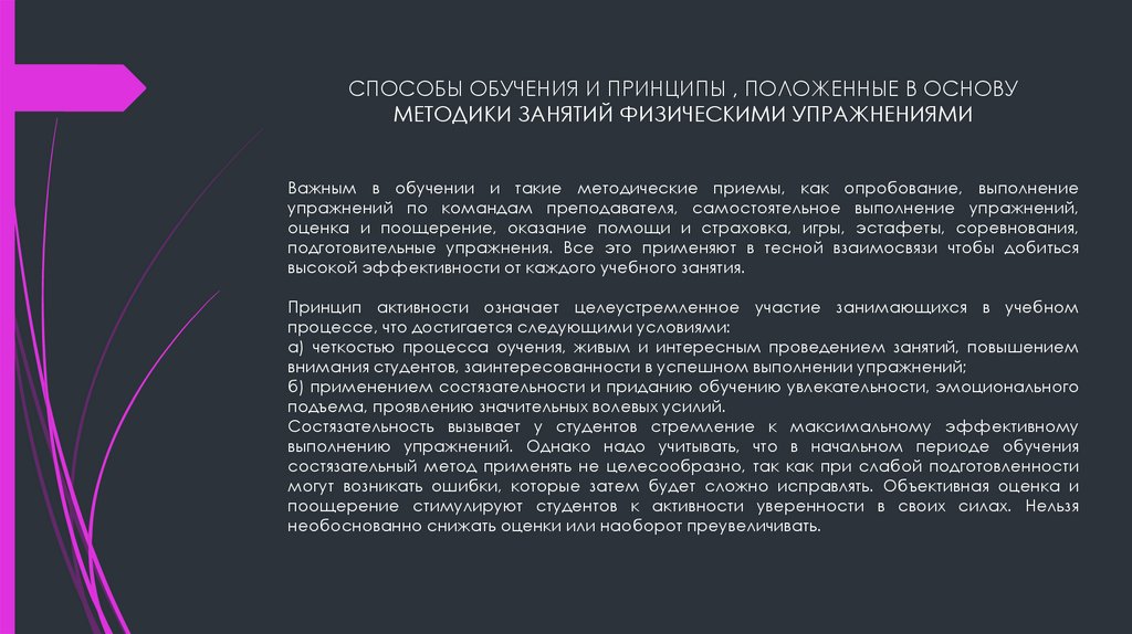 СПОСОБЫ ОБУЧЕНИЯ И ПРИНЦИПЫ , ПОЛОЖЕННЫЕ В ОСНОВУМЕТОДИКИ ЗАНЯТИЙ ФИЗИЧЕСКИМИ УПРАЖНЕНИЯМИ