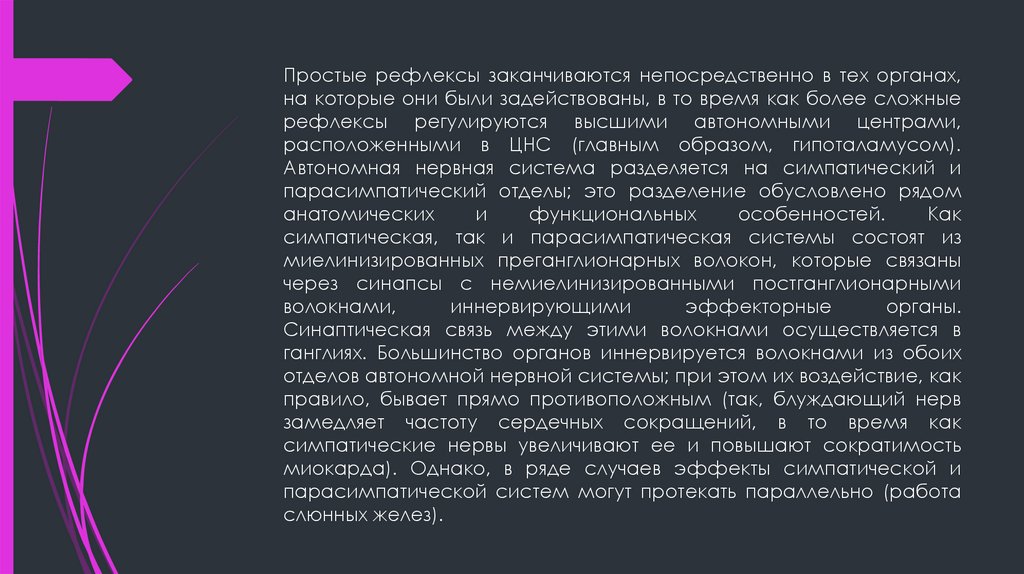 рефлексами. Так, автономная нервная система включает в себя баро- и