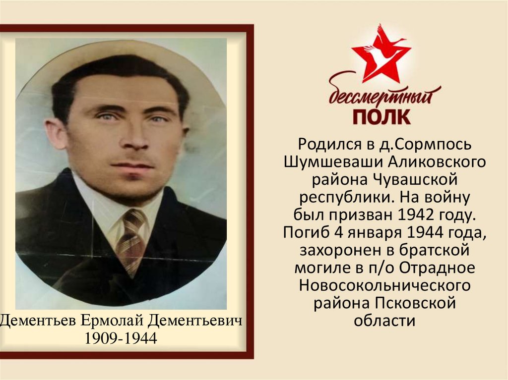 1. Дементьев Ермолай Дементьевич 1909-1944