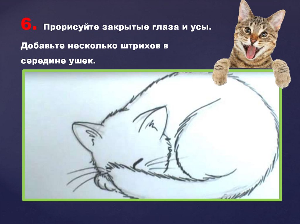 6.Прорисуйте закрытые глаза и усы.
