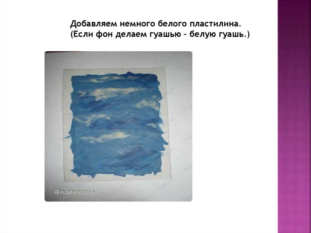 Добавляем немного белого пластилина.(Если фон делаем гуашью – белую гуашь.)