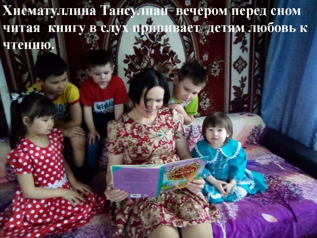 Хисматуллина Тансулпан вечером перед сномчитая книгу в слух прививает детям любовь к
