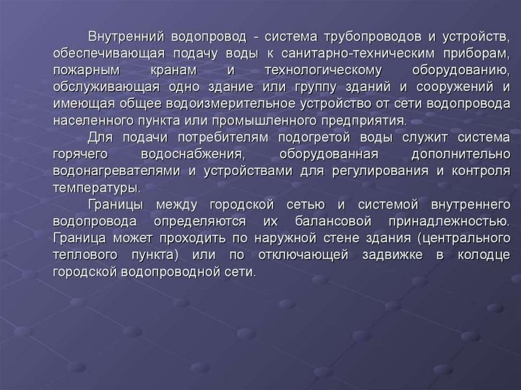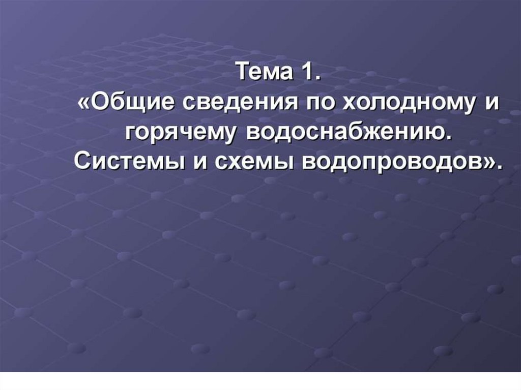 Общие сведения по холодному и горячему водоснабжению. Системы и схемы водопроводов (Тема 1)