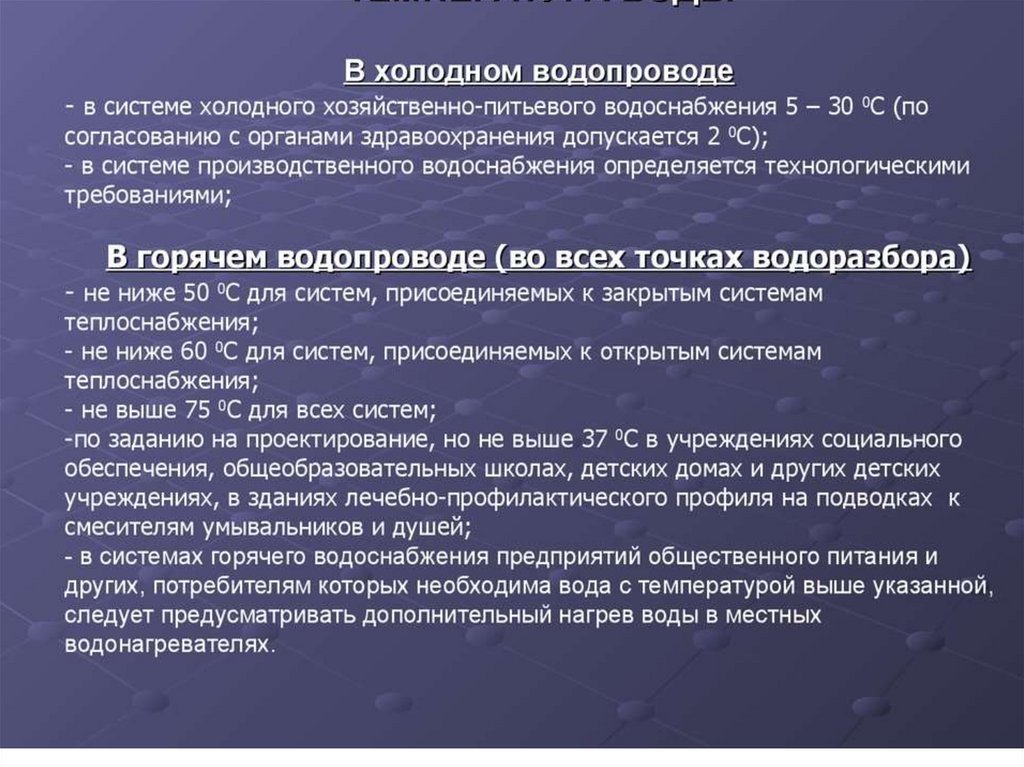Общие сведения по холодному и горячему водоснабжению