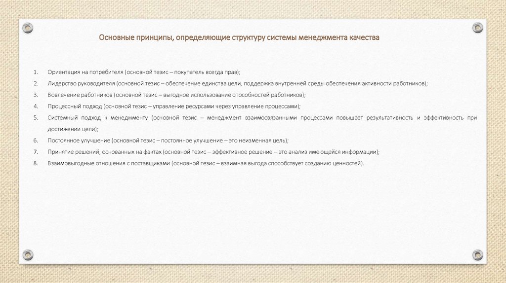 Системный подход к менеджменту (основной тезис – менеджмент взаимосвязанными процессами повышает результативность и эффективность при