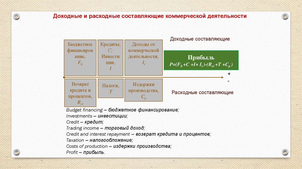 Доходные и расходные составляющие коммерческой деятельностиБюджетное