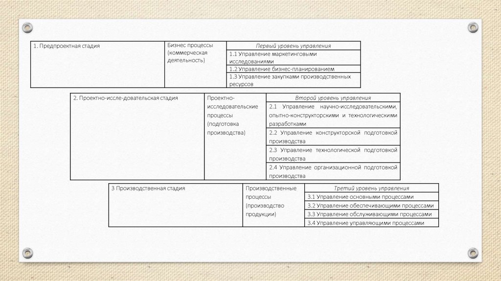 1. Организация предпроектных процессов (бизнес-процессов)2. Организация проектных процессов