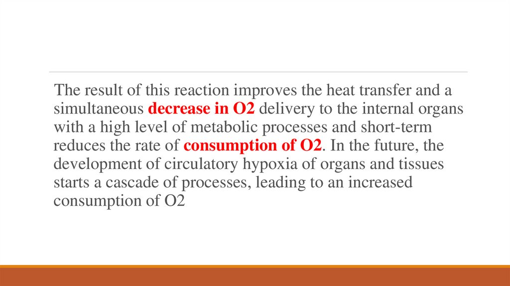The result of this reaction improves the heat transfer and asimultaneous decrease in O2 delivery to the internal organs
