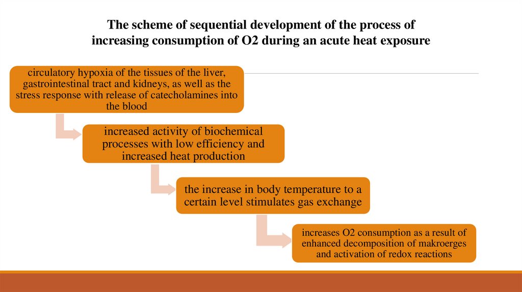 The scheme of sequential development of the process ofincreasing consumption of O2 during an acute heat exposure