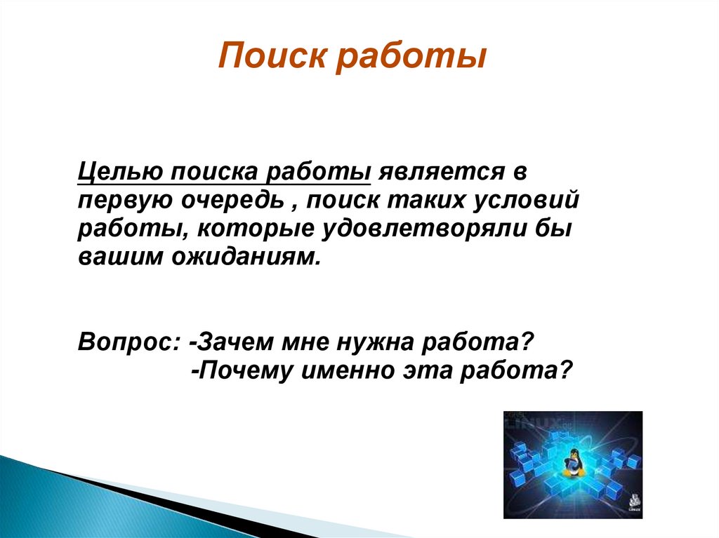 Поиск работыЦелью поиска работы является в