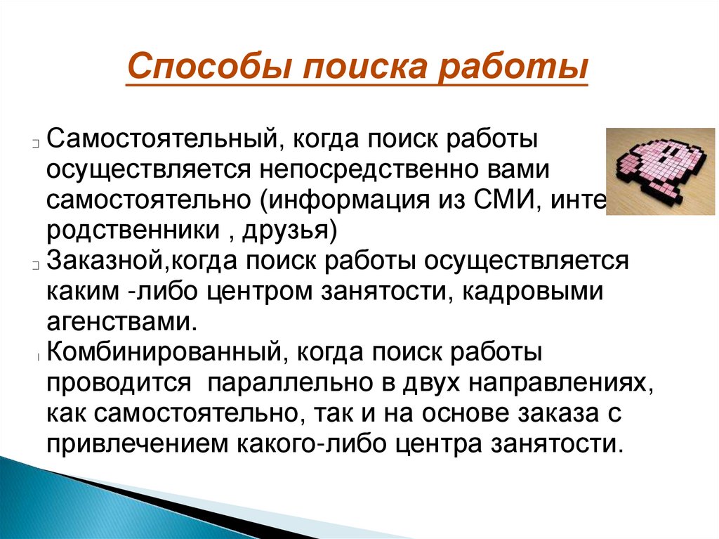 Способы поиска работыСамостоятельный, когда поиск работы