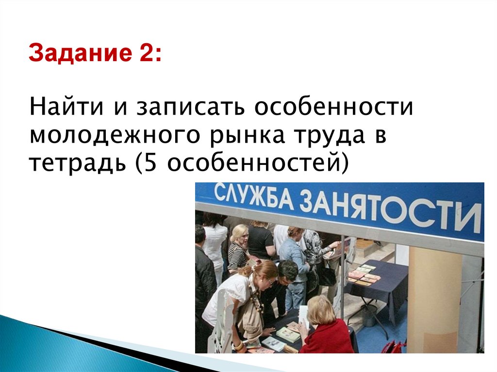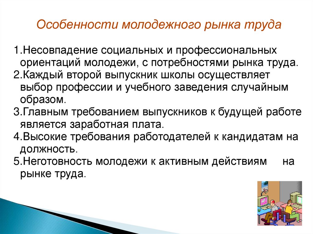 Особенности молодежного рынка труда1.Несовпадение социальных и профессиональных