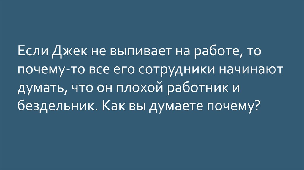 Если Джек не выпивает на работе, топочему-то все его сотрудники начинают