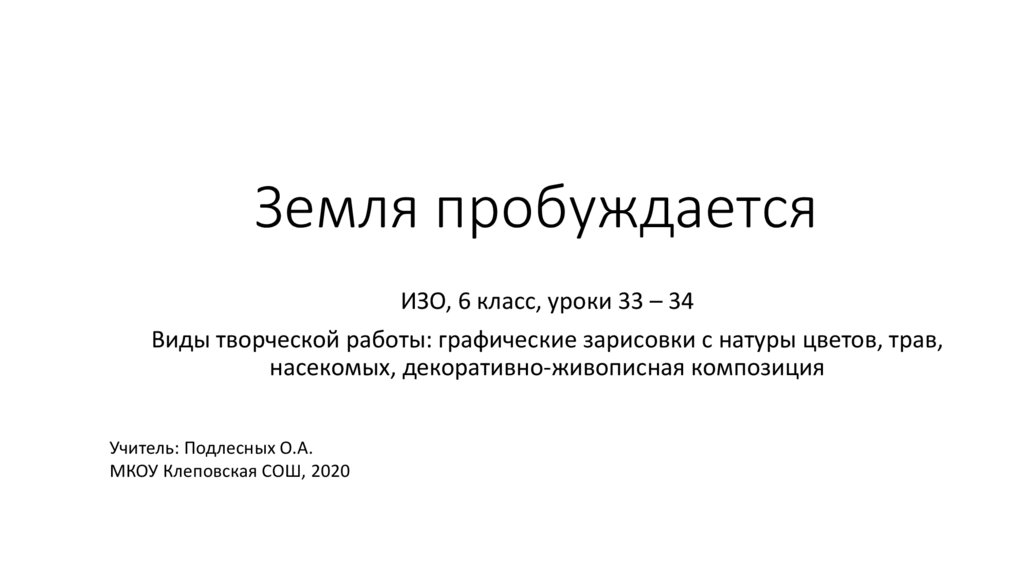 ИЗО, 6 класс, уроки 33 – 34Виды творческой работы: графические зарисовки с натуры цветов, трав,