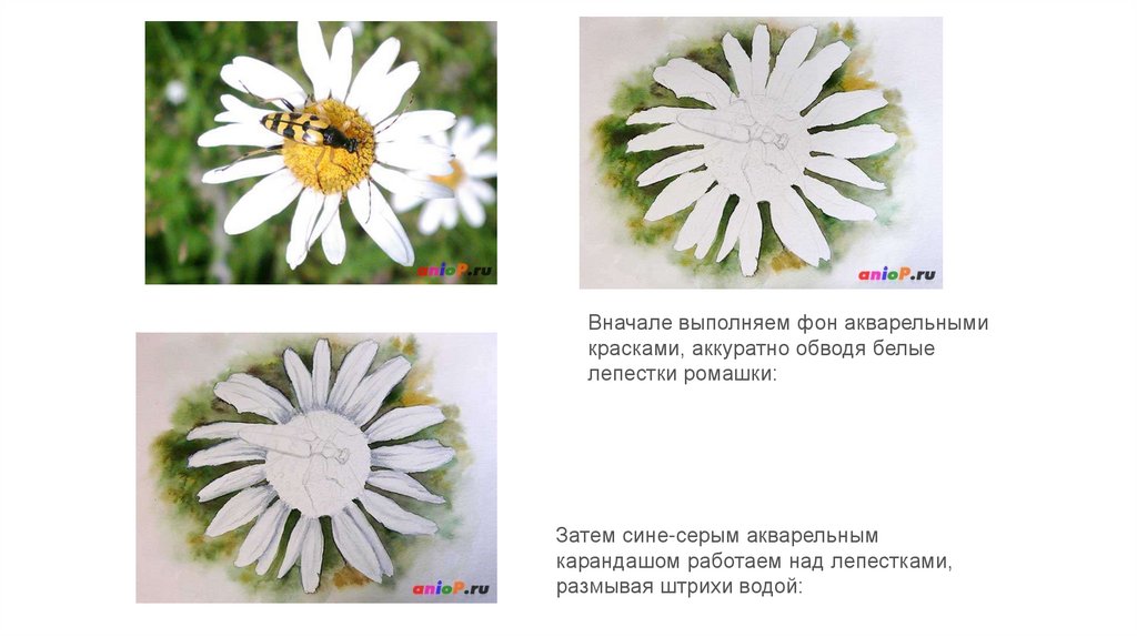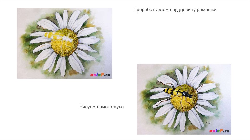 Прорабатываем сердцевину ромашкиРисуем самого жука