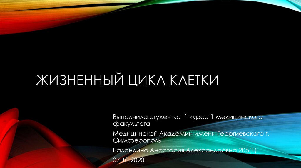 ЖИЗНЕННЫЙ ЦИКЛ КЛЕТКИВыполнила студентка 1 курса 1 медицинского