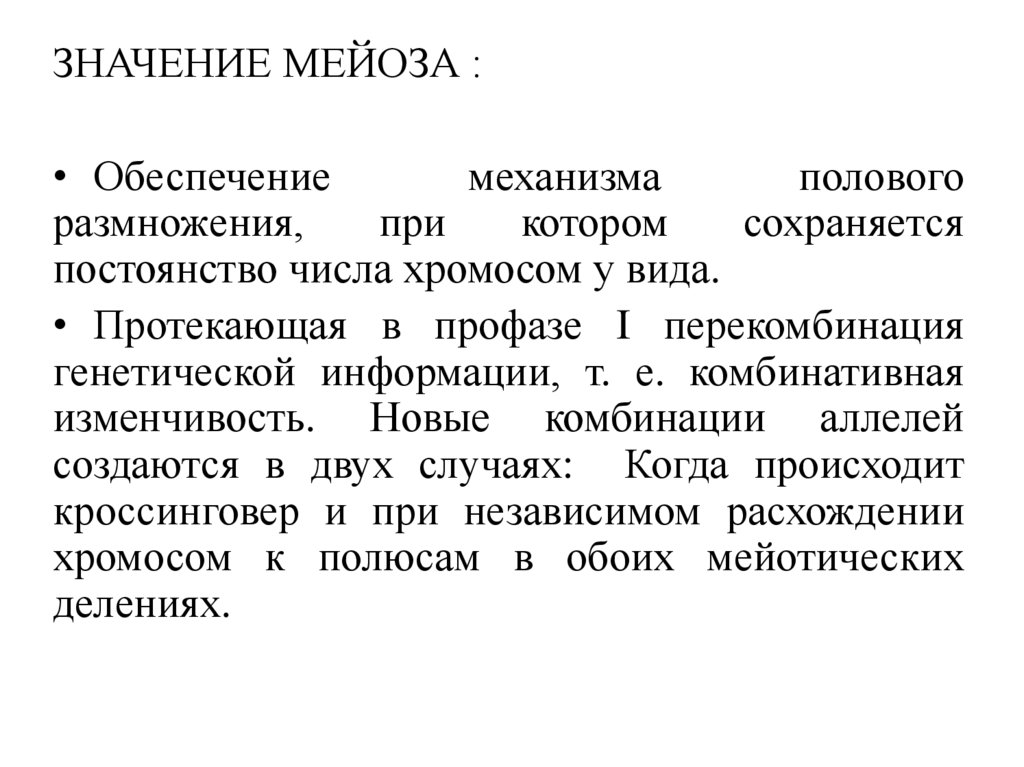 ЗНАЧЕНИЕ МЕЙОЗА :• Обеспечение