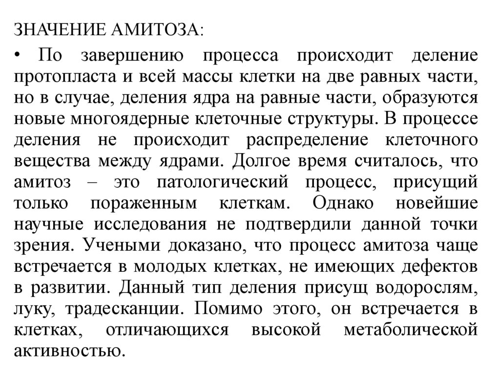 ЗНАЧЕНИЕ АМИТОЗА:• По завершению процесса происходит деление