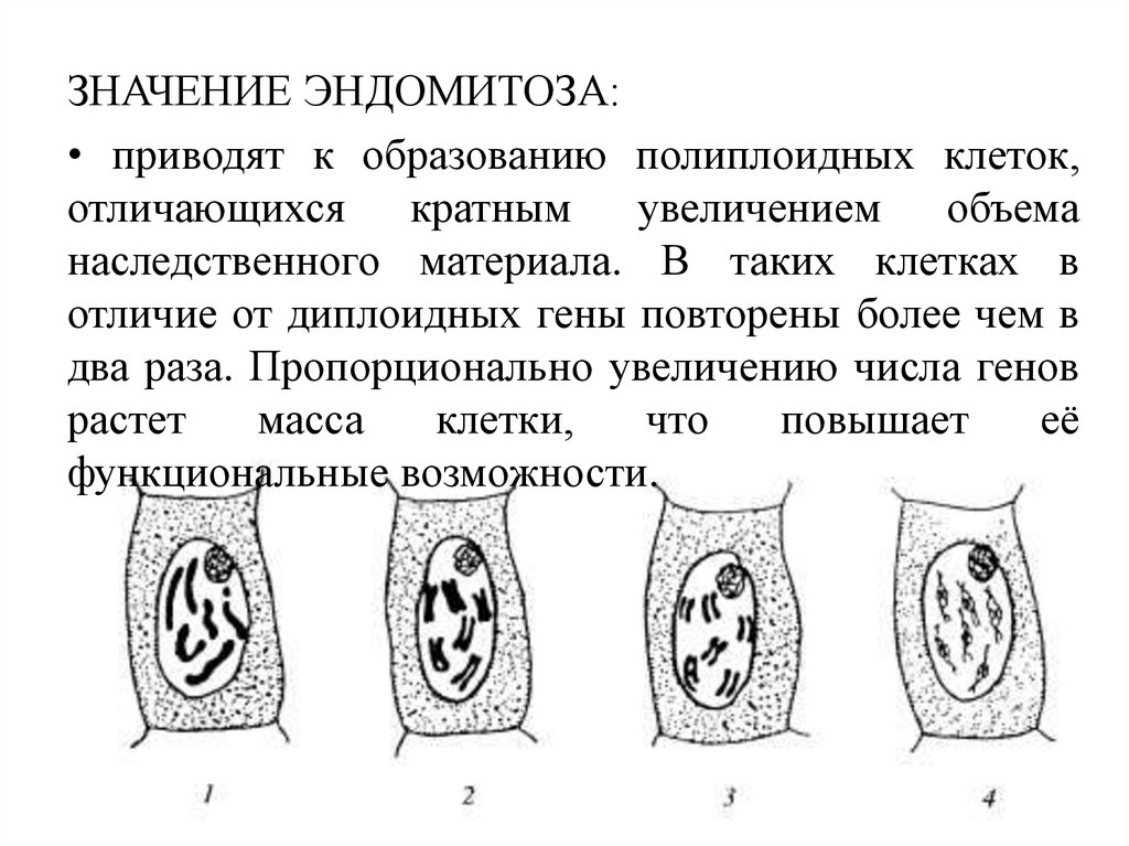 ЗНАЧЕНИЕ ЭНДОМИТОЗА:• приводят к образованию полиплоидных клеток,