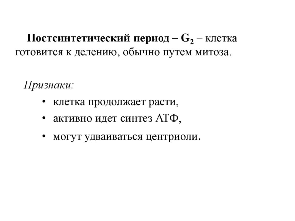Постсинтетический период – G2 – клеткаготовится к делению, обычно путем митоза.