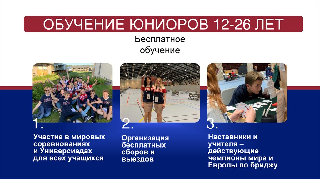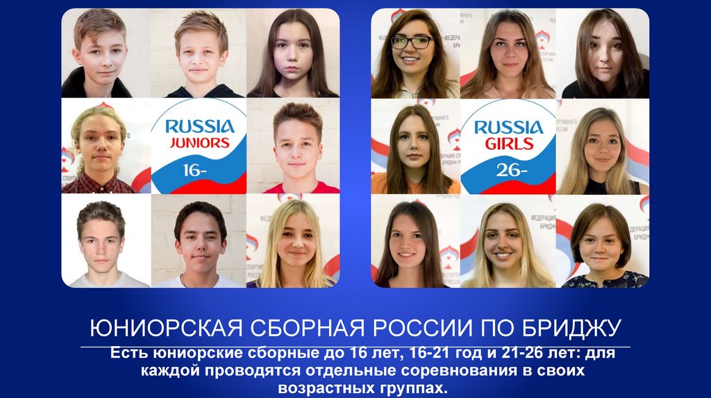 ЮНИОРСКАЯ СБОРНАЯ РОССИИ ПО БРИДЖУЕсть юниорские сборные до 16 лет, 16-21 год и 21-26 лет: для