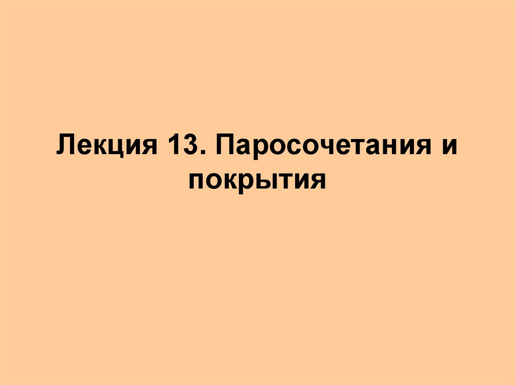 Лекция 13. Паросочетания и покрытия