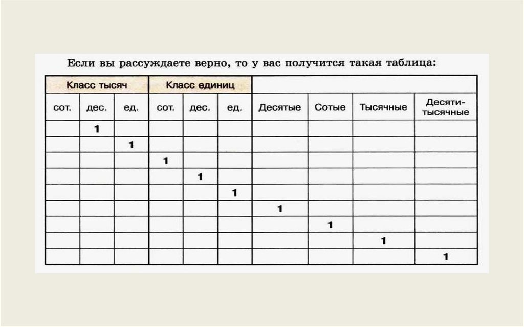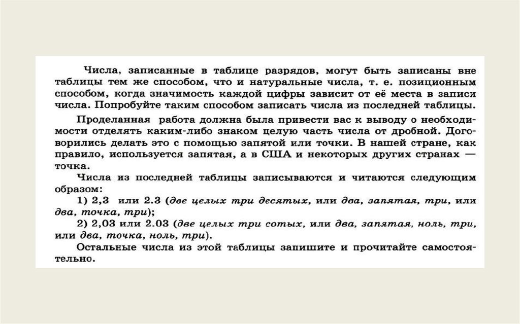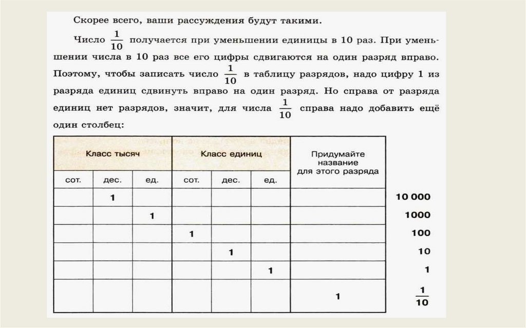 записи в таблице разрядов к десятичной дроби и