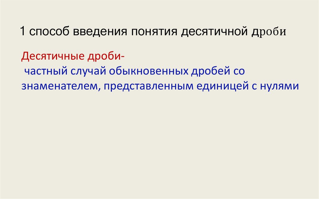 1 способ введения понятия десятичной дробиДесятичные дробичастный случай обыкновенных дробей со