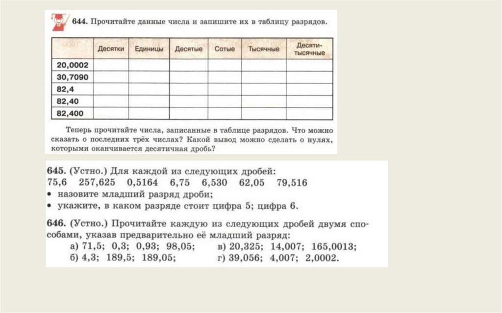 десятичных дробей и более полное