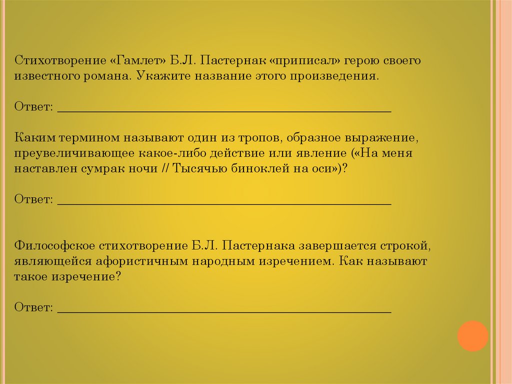 Выпишите из третьей строфы стихотворения Б.Л. Пастернака «Гамлет»