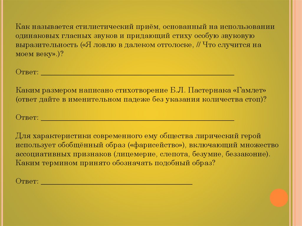 Как называется стилистический приём, основанный на использованииодинаковых гласных звуков и придающий стиху особую звуковую