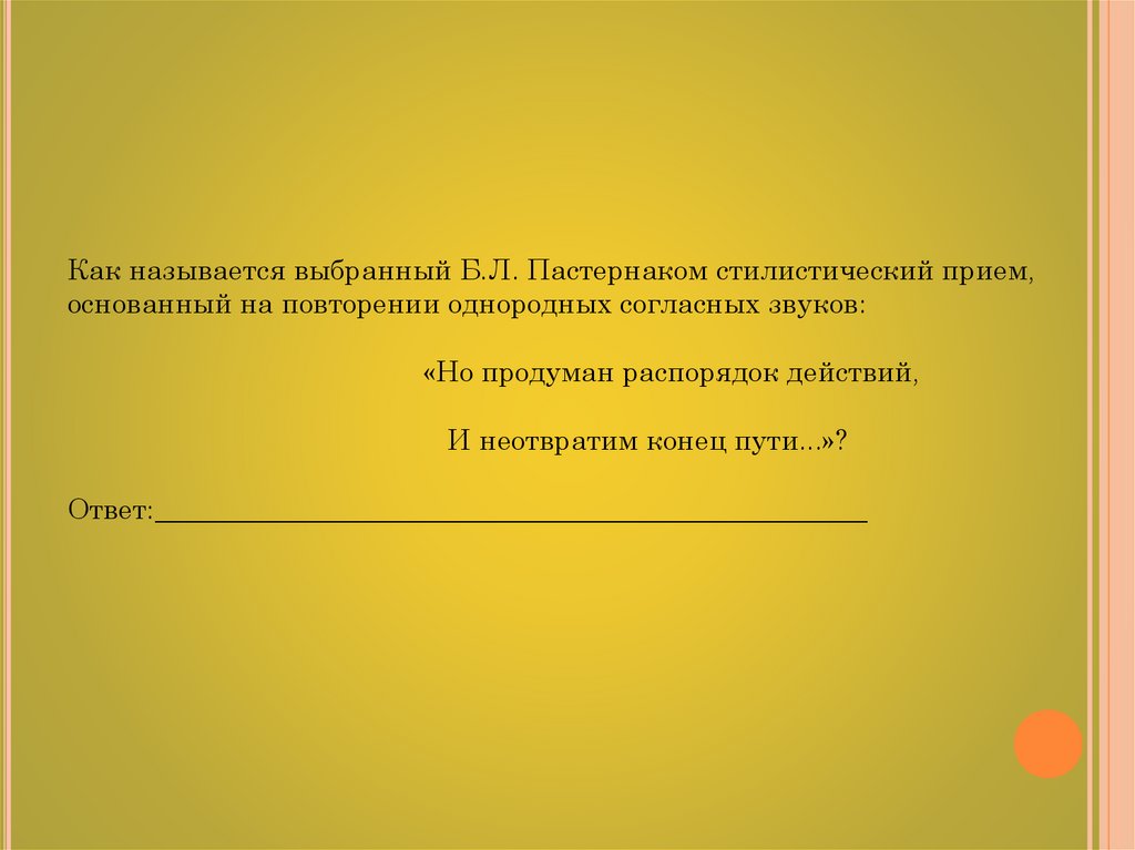 Как называется выбранный Б.Л. Пастернаком стилистический прием,основанный на повторении однородных согласных звуков: