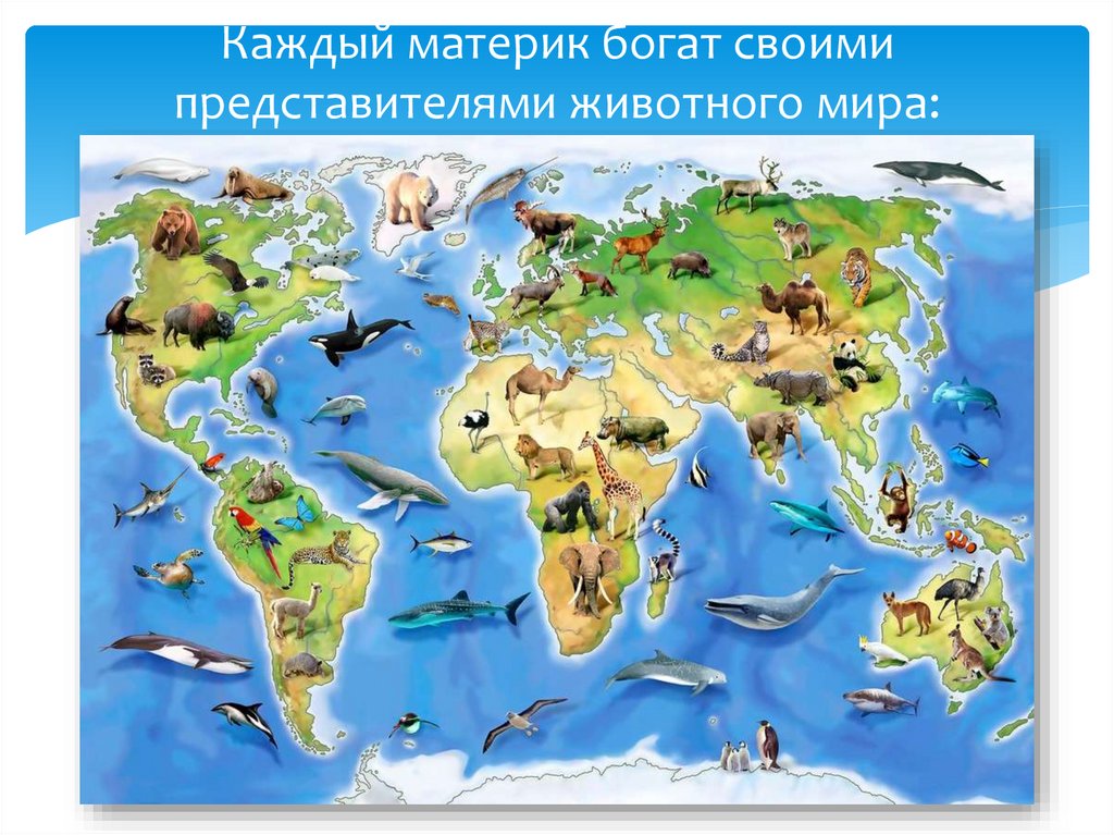 Каждый материк богат своимипредставителями животного мира:
