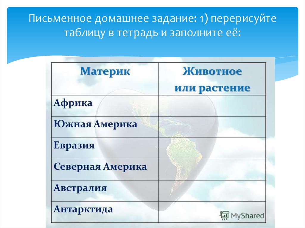 Письменное домашнее задание: 1) перерисуйтетаблицу в тетрадь и заполните её: