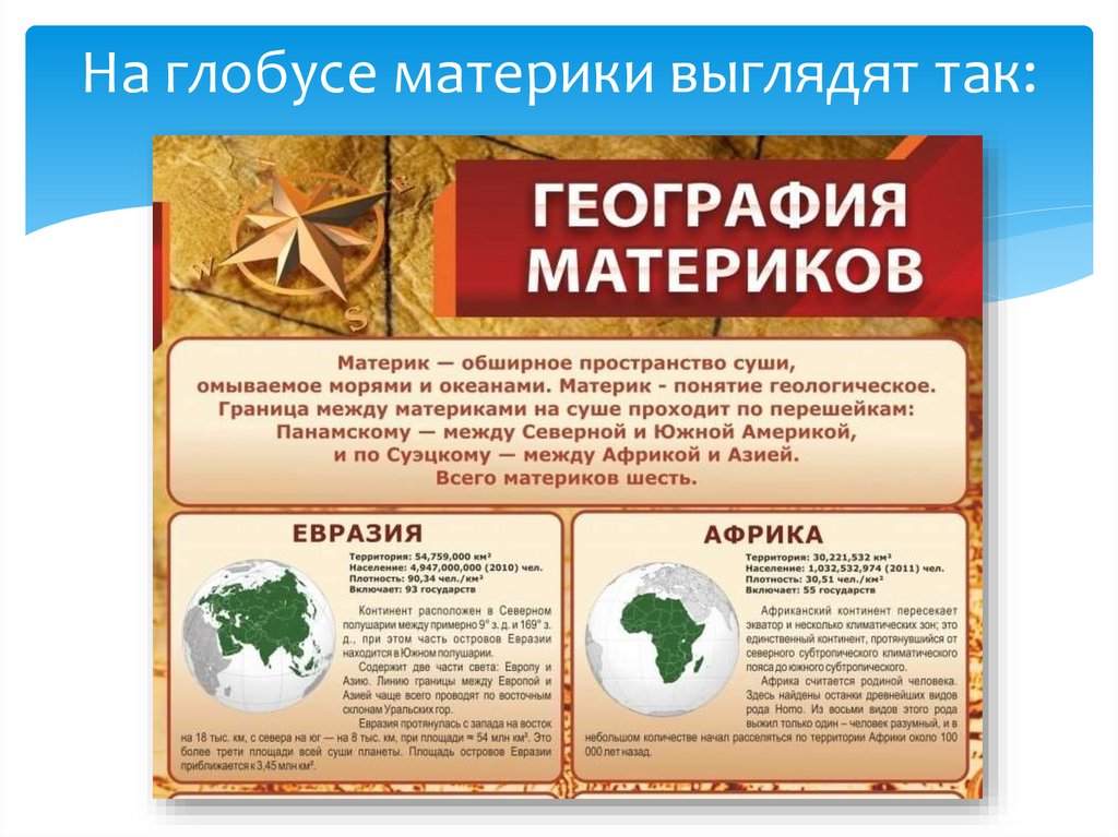 На глобусе материки выглядят так:12.