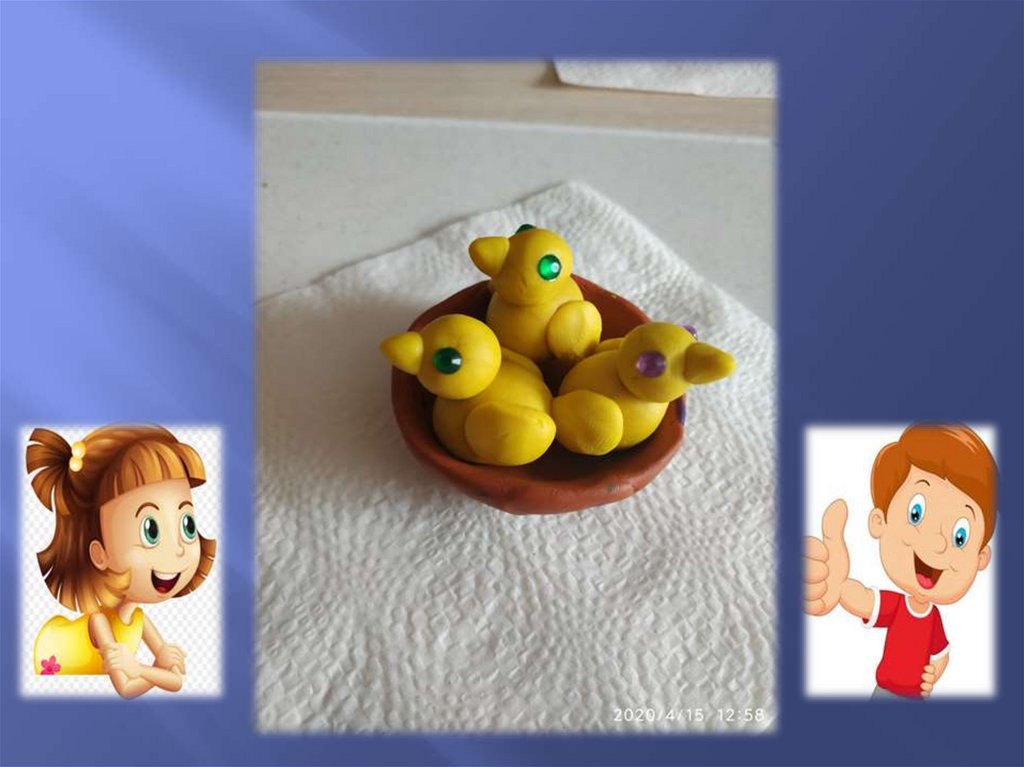Лепка. Птичка клюёт зёрнышки из блюдечка