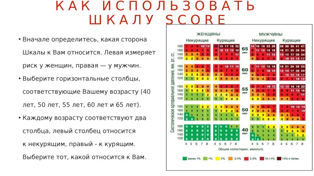 ШКАЛА SCOREШкала SCORE (Systematic COronary