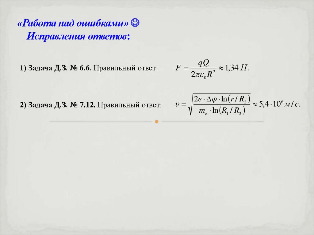 1. «Работа над ошибками» Исправления ответов: