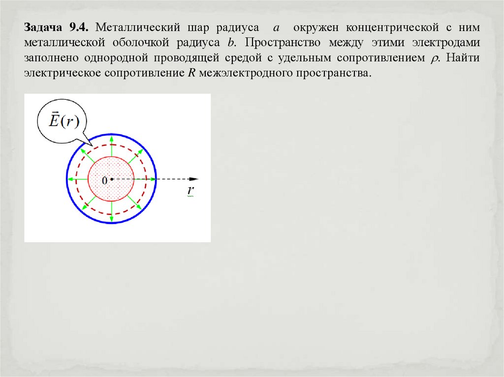 Задача 9.4. Металлический шар радиуса a окружен концентрической с нимметаллической оболочкой радиуса b. Пространство между этими электродами