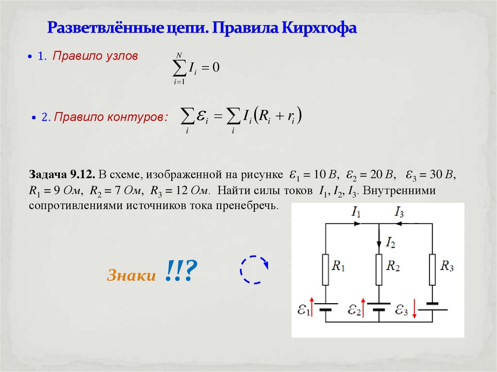 2. Закон Ома в интегральной форме. Правила Кирхгофа . Решить задачи: 9.1; 9.12.