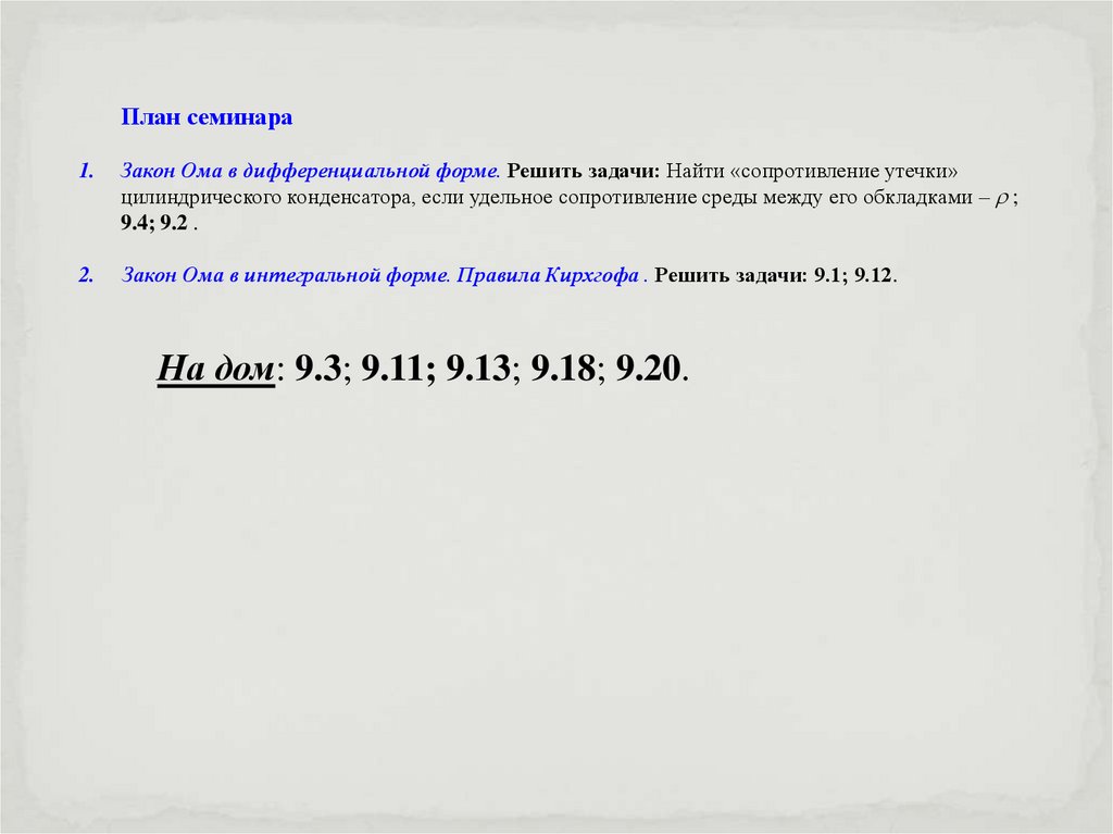 2. Семинар 4. «Постоянный электрический ток»