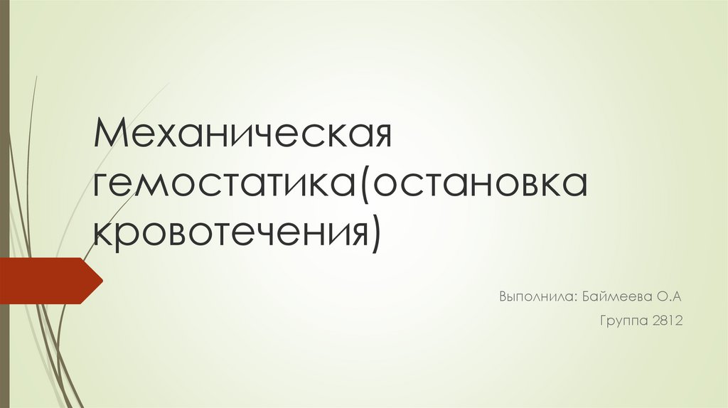 2. Окончательная остановка кровотечения производится врачом в лечебном учреждении. Механические методы: