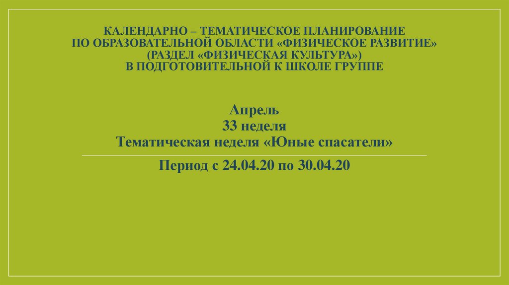 КАЛЕНДАРНО – ТЕМАТИЧЕСКОЕ ПЛАНИРОВАНИЕПО ОБРАЗОВАТЕЛЬНОЙ ОБЛАСТИ «ФИЗИЧЕСКОЕ РАЗВИТИЕ»