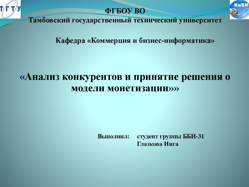 «Анализ конкурентов и принятие решения о модели монетизации»»
